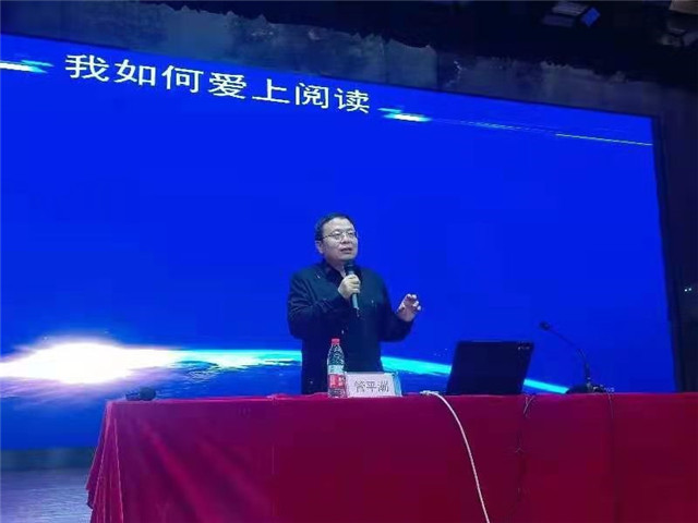 在龍灣中學(xué),管平潮做了題為“閱讀讓心靈群星閃耀”的分享,用輕松幽默的方式向師生們介紹了他多年的閱讀和創(chuàng)作體驗(yàn)。管平潮認(rèn)為,興趣是最好的老師,好的閱讀習(xí)慣使人受益良多:不僅能提升學(xué)習(xí)工作效率和綜合素質(zhì),更能開闊視野、滋養(yǎng)心靈。他勸告青年學(xué)生,閱讀不是為了炫耀,而是為了讓讀過的書化為生命的養(yǎng)料,讓自己成為比昨天更好的人。