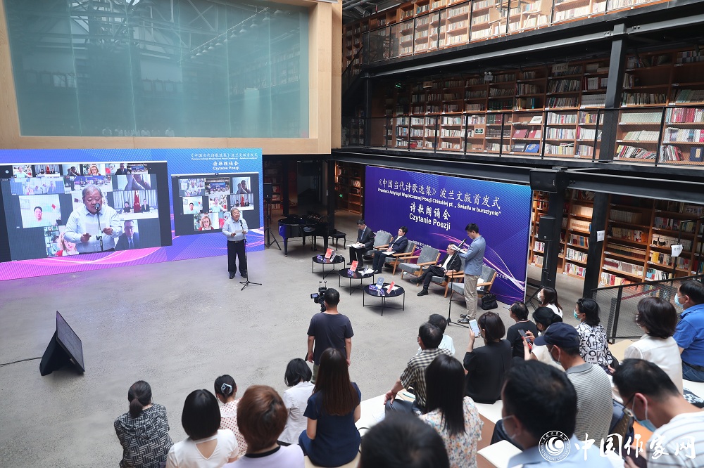 5月18日下午,由中國作家協(xié)會(huì)、中國駐波蘭大使館、波蘭對話出版社共同主辦的《中國當(dāng)代詩歌選集》波蘭文版首發(fā)式暨詩歌朗誦會(huì)在北京紅樓公共藏書樓以線上線下結(jié)合的方式舉行。中國作協(xié)副主席、書記處書記吉狄馬加,中國駐波蘭大使館文化參贊張中華出席活動(dòng)并致辭。中國詩人湯養(yǎng)宗、胡弦、陳先發(fā)、張執(zhí)浩與本書譯者,波蘭漢學(xué)家、翻譯家李周、卡塔基娜·薩雷克,波蘭對話出版社總經(jīng)理安德烈·帕西米斯等通過視頻連線方式共襄詩歌盛會(huì)。朗誦會(huì)由中國作協(xié)外聯(lián)部負(fù)責(zé)人張洪斌主持。