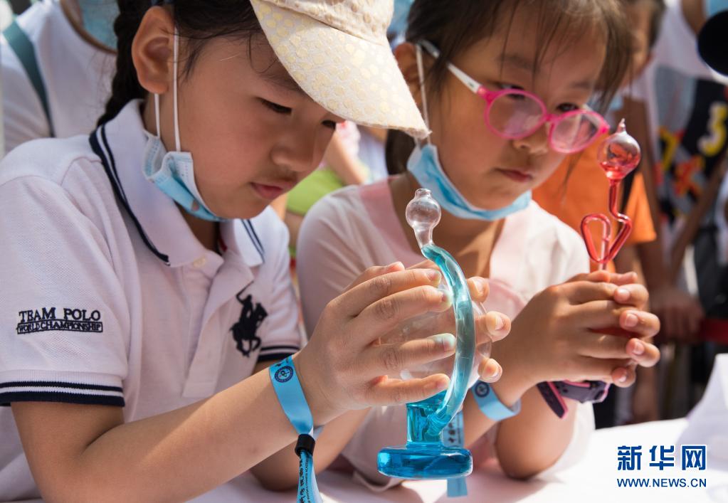 5月22日,在中科院物理研究所舉行的公眾科學(xué)日活動(dòng)現(xiàn)場(chǎng),參觀者在體驗(yàn)“掌上噴泉”?!⌒氯A社記者 金立旺 攝