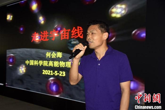 中科院高能所何會海研究員作《走進宇宙線》科普報告?!≈行律缬浾邔O自法 攝
