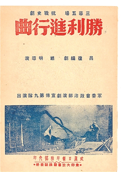 好在,其他大部分抗敵演劇隊(duì)演出說明書多被胡傳敏收入囊中,如《為國忘家》《勝利進(jìn)行曲》等。這些演出說明書在上海圖書館辦展期間展出,讓更多的人了解抗戰(zhàn)時(shí)期中國話劇人如何用自己的行動(dòng)宣傳抗日事跡。