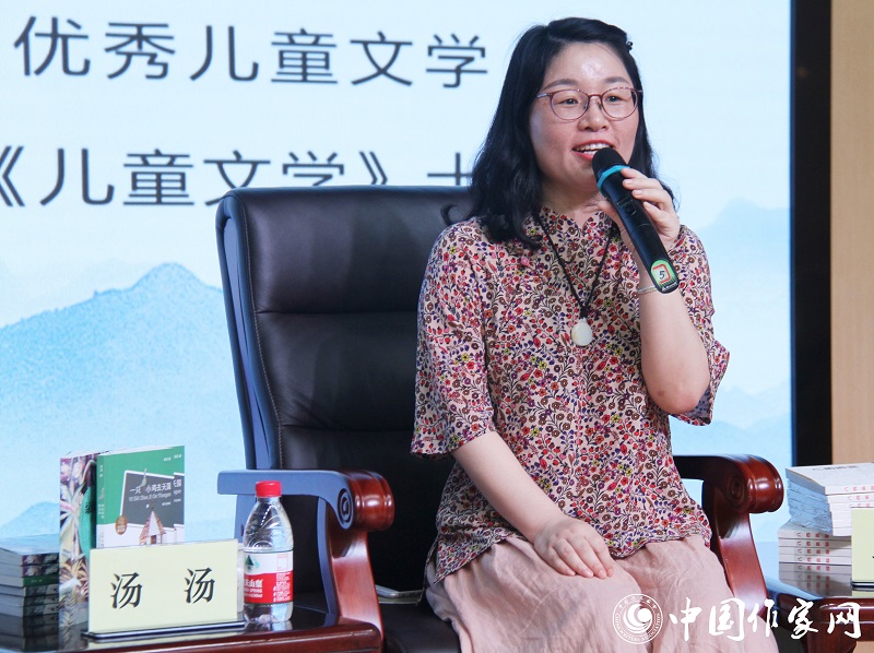 兒童文學(xué)作家湯湯也是一名小學(xué)語文教師,她坦言,還未開始寫作前曾對(duì)兒童文學(xué)存有某種偏見,認(rèn)為兒童文學(xué)講述的就是“王子與公主從此過上了幸福的生活”“大灰狼與小白兔”之類的簡(jiǎn)單故事,沒有深刻內(nèi)容,只供兒童閱讀,與成人無關(guān)。通過現(xiàn)場(chǎng)講述童話作品《大海的盡頭在哪里》,她向讀者介紹了自己轉(zhuǎn)變偏見的過程,認(rèn)為兒童文學(xué)其實(shí)并不簡(jiǎn)單,它的內(nèi)涵極其豐富;兒童文學(xué)也能反映現(xiàn)實(shí)生活,揭露社會(huì)現(xiàn)狀;優(yōu)秀的兒童文學(xué)作品可以激發(fā)孩子們的創(chuàng)造力與想象力。她希望自己能繼續(xù)保持文學(xué)初心,用愛與智慧,為孩子們寫出更多更好的兒童文學(xué)作品。