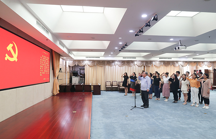 為慶祝中國共產(chǎn)黨成立100周年,6月28日,中國作協(xié)組織黨的十九大以來入黨的新黨員舉行向黨旗宣誓儀式,集體重溫入黨誓詞,牢記初心使命,堅(jiān)定理想信念,強(qiáng)化為黨的事業(yè)奮斗終生的思想基礎(chǔ)。中國作協(xié)機(jī)關(guān)黨委書記吉狄馬加領(lǐng)誓。