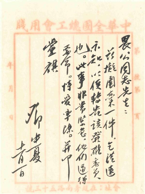 按“中華全國總工會”成立于1925年5月1日,取代舊有的“中國勞動組合書記部”。舊有的“書記部”曾在廣州召開“第一次全國勞動大會”,當(dāng)時(shí)鄧中夏被選為書記。罷工期間,鄧亦曾使用“全國總工會代表”的身份。故鄧氏在函中得用“中華全國總工會”關(guān)防字樣。