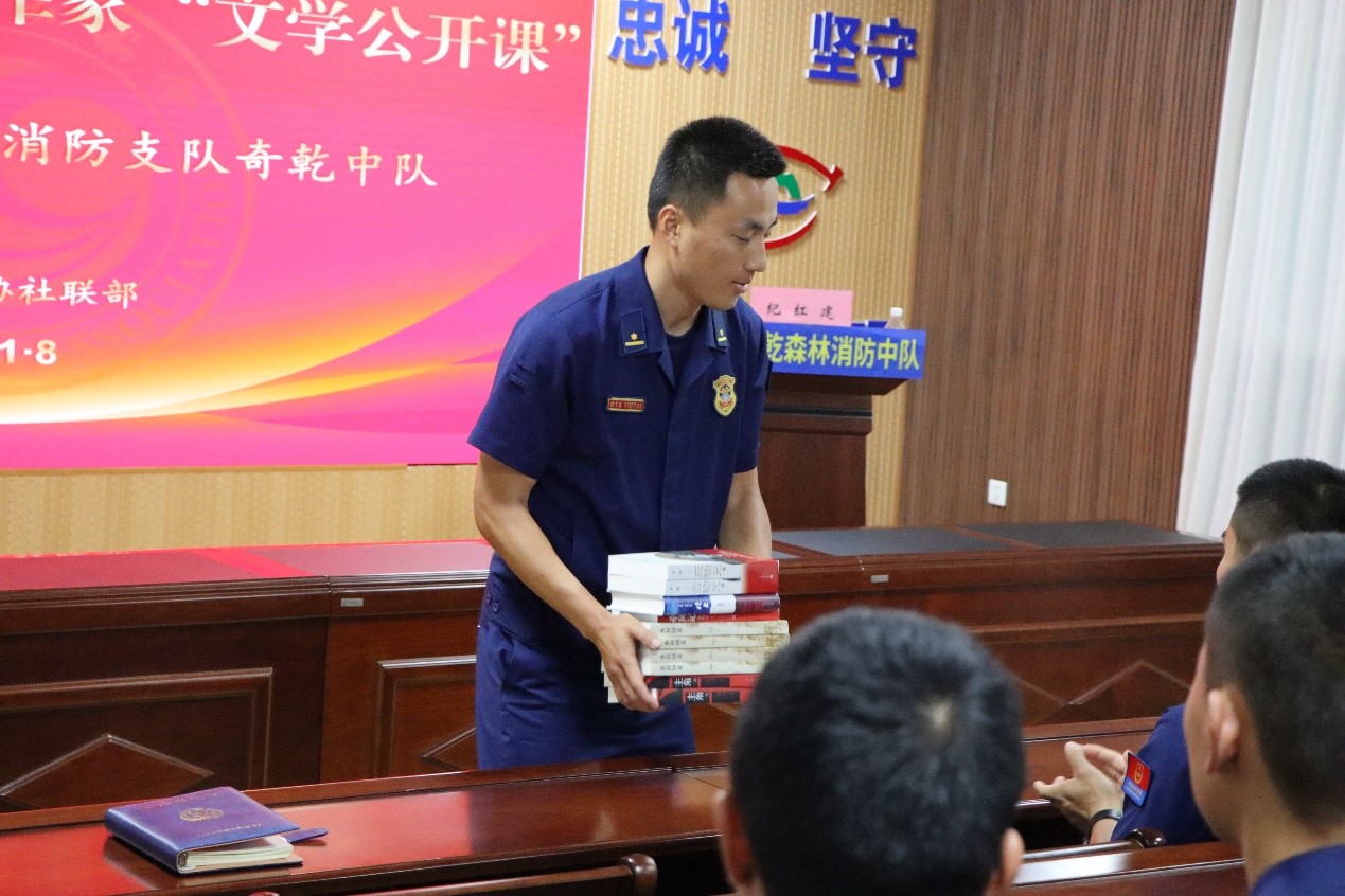 8月2日,由中國(guó)作協(xié)社聯(lián)部主辦的文學(xué)照亮生活—中國(guó)作家“文學(xué)公開課”在大興安嶺森林消防支隊(duì)奇乾中隊(duì)舉辦,活動(dòng)邀請(qǐng)魯迅文學(xué)獎(jiǎng)獲得者、著名報(bào)告文學(xué)作家紀(jì)紅建為森林消防一線指戰(zhàn)員進(jìn)行專題授課,將文學(xué)之光照進(jìn)茫茫林海。