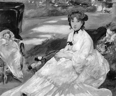 其次是所謂“戶外畫法”。其實最早采用這種畫法的人不是印象派畫家,而是巴比松畫派的畫家,后者以描繪楓丹白露等法國風(fēng)景和鄉(xiāng)村景色而聞名。不過他們在繪畫時只是在戶外得其大概,之后帶回畫室對作品做進一步完善。而印象派畫家才是真正意義上在戶外完成畫作的第一批畫家。1868年前后,莫奈和雷諾阿肩并肩地在一個名叫“蛙塘”的風(fēng)景名勝地創(chuàng)作了第一批帶有較為嚴格意義上的印象派風(fēng)格的戶外作品。1870年,馬奈在戶外完成了《在花園里》,差不多同一時期,莫奈也創(chuàng)作了類似題材的作品??傊?874年,莫奈、雷諾阿、畢沙羅、德加、莫里索等人舉辦第一屆印象派畫展時,印象派從孕育到嶄露頭角,早已過去五六年甚至更長時間了。