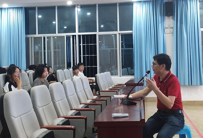 近日,河池市作家協(xié)會到環(huán)江二高開展文學志愿服務(wù)。5月29日晚,市作協(xié)主席譚自安主要就小說閱讀與創(chuàng)作進行了指導(dǎo)。他結(jié)合自身的成長和創(chuàng)作歷程,分享了諸多經(jīng)驗:文學是非常自由的;一定要加強閱讀,尤其是對經(jīng)典名著的閱讀,古今中外都要看,還要學會縱橫對比;文學作品和其他藝術(shù)品一樣,創(chuàng)作時要用自己的語言,少用成語,不斷創(chuàng)新,不要復(fù)制;文學創(chuàng)作要與國家命運相結(jié)合,關(guān)注個人的精神世界;多看小說,可以寫各種文體,要一點一點寫,分開寫,寫得精一點。