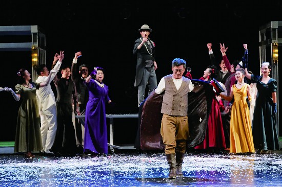 當(dāng)然,演出并非無可挑剔,最重要的遺憾在于:那些從《新娘》《關(guān)于愛情》中摘出的“愛情金句”脫離了原作品的語境,與三個獨(dú)幕“通俗笑劇”的劇情產(chǎn)生了斷裂矛盾,無法支撐情節(jié)的內(nèi)容。如果試圖以契訶夫的愛情觀來統(tǒng)領(lǐng)全劇,顯然還需要從文本和結(jié)構(gòu)上更加精心地打磨,這樣才有可能使得契訶夫小說中的“愛情金句”成為演出內(nèi)在的靈魂,才有可能使得“通俗笑劇”變成真正富有詩意的“抒情喜劇”。