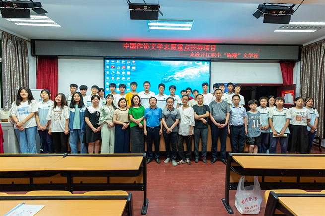 6月27日,中國(guó)作協(xié)文學(xué)志愿服務(wù)示范性重點(diǎn)扶持項(xiàng)目——四川省達(dá)州市開江縣校園文學(xué)大講堂在縣職業(yè)中學(xué)舉行。來自開江縣作家協(xié)會(huì)的文學(xué)志愿者:縣文聯(lián)副主席武禮建、縣作協(xié)主席林佐成、縣作協(xié)副主席何云帆、彭輝、劉春風(fēng)、譚杰及開江中學(xué)“新星”文學(xué)社社長(zhǎng)曾瑜、縣作家協(xié)會(huì)會(huì)員錢良勝、艾雪和開江縣職業(yè)中學(xué)“海潮”文學(xué)社100多位社員參加了此次講座。開江縣職業(yè)中學(xué)“海潮”文學(xué)社社長(zhǎng)唐秘主持本次講座。