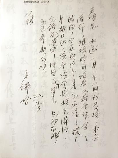 承邀十日下午二時(shí)到貴校,本應(yīng)遵命。唯該時(shí)間恰為文藝座談會(huì)之時(shí)間,實(shí)在無法分身。乞原諒!從下星期日起,該座談會(huì)擬移至華華,乞俯允,為感!時(shí)間:下午二時(shí)半。兄如有暇,并乞參加。匆候