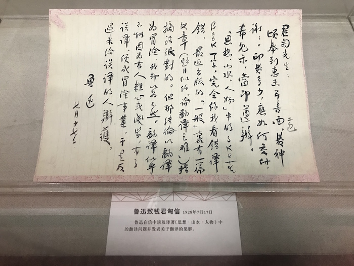 展廳現(xiàn)場,魯迅致施蟄存書信