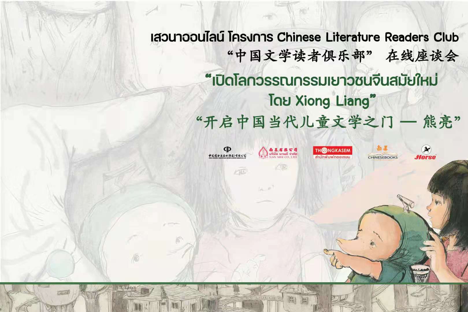 活動(dòng)主題為“開啟中國當(dāng)代兒童文學(xué)之門”。熊亮作為此次活動(dòng)的嘉賓,在一個(gè)半小時(shí)的時(shí)間里與泰國讀者云端聚會(huì),暢談創(chuàng)作靈感,并與泰國網(wǎng)友問答互動(dòng)。