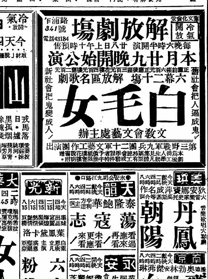 1949年6月27日刊登在《解放日報》上的《白毛女》演出廣告