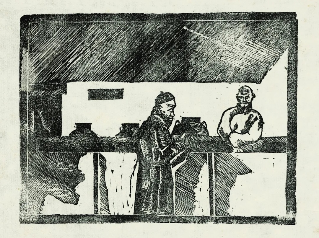 《魯迅日記》1934年5月18日記云:“得劉峴信并木刻《孔乙己》一本,單片十一幅,夜復之?!濒斞冈趶托胖袑懙溃骸啊滓壹旱膱D,我看是好的,尤其是許多顏面的表情,刻得不壞,和本文略有出入,也不成問題。不過這孔乙己是北方的孔乙己,例如騾車,我們那里就沒有,但這也只能如此,而且使我知道假如孔乙己生在北方,也該是這樣一個環(huán)境?!?/p>