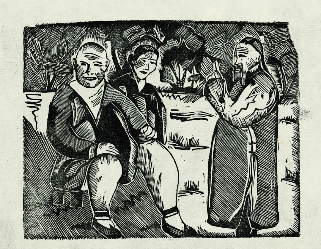1933年11月,劉峴在上海美專發(fā)起成立未名木刻社,創(chuàng)作、出版了一系列木刻版畫集。主持未名木刻社期間,劉峴一人就創(chuàng)作了《野草》插圖集、《孔乙己》插圖集、《風波》插圖集、《阿Q正傳》插圖集和《怒吼吧,中國之圖》等10多種木刻版畫集。劉峴將這些作品呈送給魯迅審閱,魯迅對這些插圖給予指導和肯定,甚至連人物的服飾,環(huán)境風物,也都給出意見。足見,魯迅對青年人的關(guān)心與扶植。