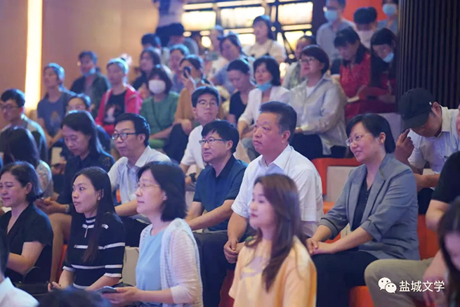 鹽城市新聞出版局副局長朱友明,市文聯(lián)黨組成員、副主席、市作協(xié)主席張曙光,市全民閱讀促進會會長季德榮、副會長劉進,市圖書館館長黃興港,市作家協(xié)會副主席兼秘書長徐向林,鹽南高新區(qū)宣傳信息中心主任盧玉恒,建湖縣委宣傳部副部長葛菁,言+買書匯總經(jīng)理王明瑜等嘉賓及近百名市圖書館黨員代表、社會各界書友參加了分享會。分享會由知名評論家孫曙、朗誦家江華主持。