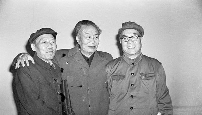 田間(左)、艾青(中)、魏巍合影。資料圖片