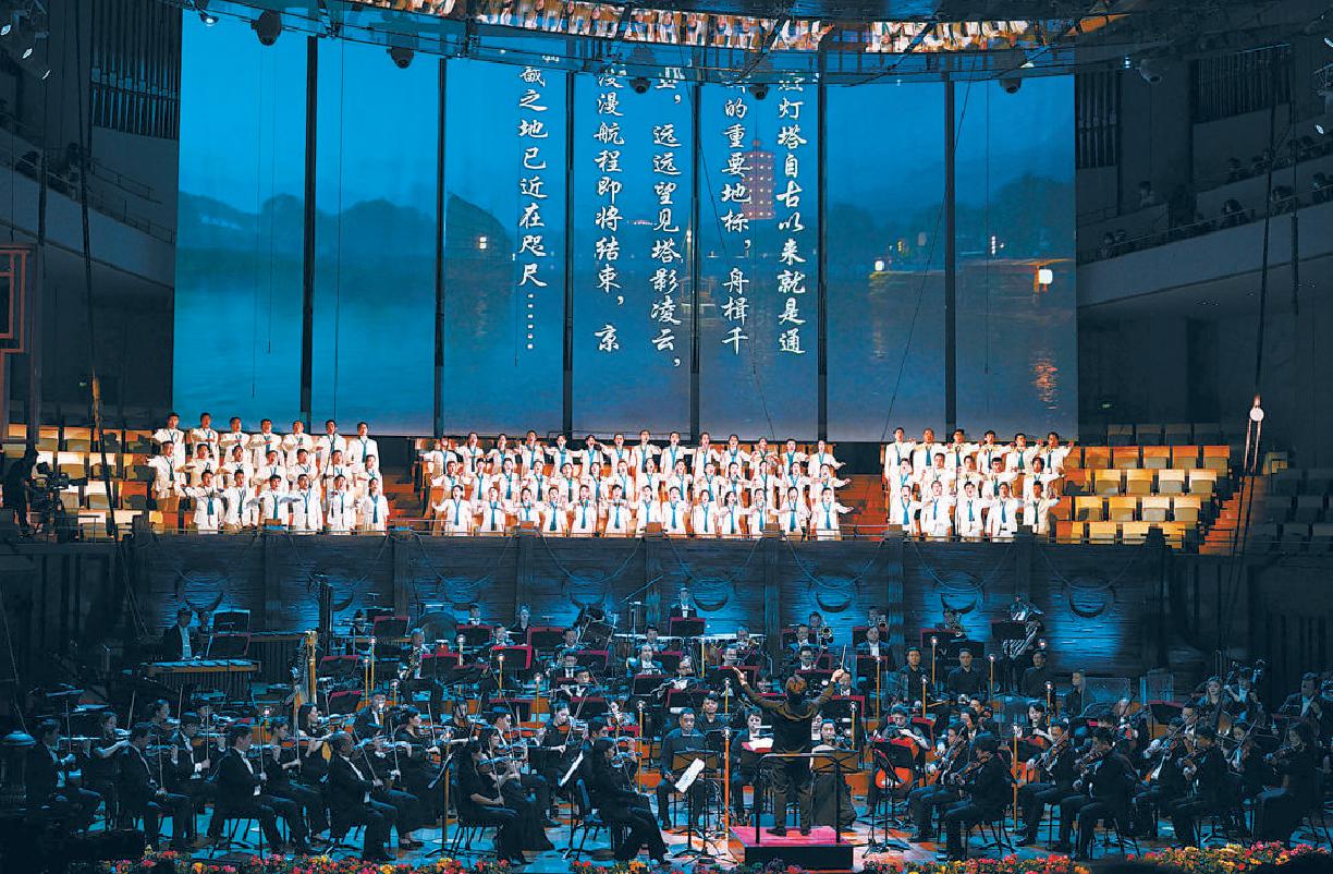 藍(lán)色的燈光映照周圍,猶如運(yùn)河上的粼粼水波。一艘航船從歷史的煙云中駛來,沿岸風(fēng)景如畫:燃燈塔影影綽綽,張家灣煙柳依稀,積水潭帆檣林立……21日晚,中秋佳節(jié)之際,大型京劇交響套曲《京城大運(yùn)河》在國家大劇院音樂廳再度上演,亮相第九屆中國京劇藝術(shù)節(jié)。北京交響樂團(tuán)藝術(shù)總監(jiān)李飚執(zhí)棒北京交響樂團(tuán)、北京京劇院、北京音協(xié)合唱團(tuán),攜手譚孝曾、杜鎮(zhèn)杰、李宏圖、遲小秋、朱強(qiáng)等京劇名家共同登臺(tái)。