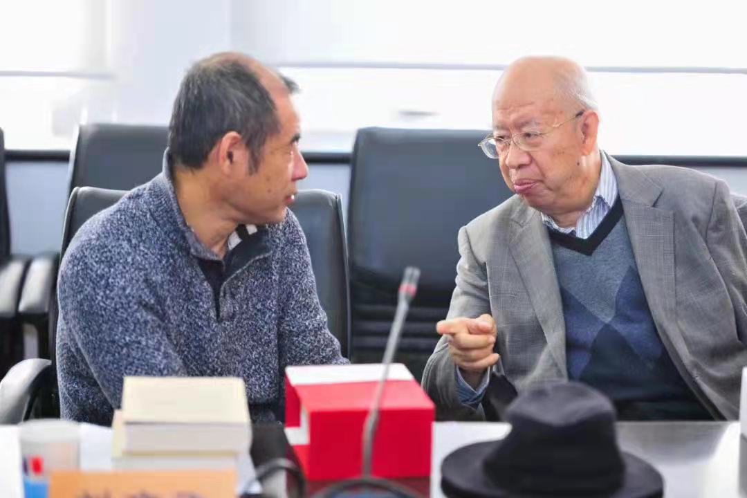 葉老師是9月27日6時(shí)離世的,這兩天,網(wǎng)上流傳著大量緬懷葉老師的文章和葉老師的遺文遺像。在漓江出版社推送的《深切緬懷:翻譯家、德語(yǔ)文學(xué)研究專家、卡夫卡研究專家葉廷芳先生》的文章中,我驚喜地看到了我與葉老師的一張合影。我之前沒(méi)有見(jiàn)過(guò)這張照片,拍攝地點(diǎn)是中國(guó)社科院外文所,時(shí)間是2018年12月,當(dāng)時(shí)我和葉老師一起參加漓江出版社舉辦的《春潮漫卷書(shū)香永——開(kāi)放聲中書(shū)人書(shū)事書(shū)信選》(劉碩良先生主編)出版座談會(huì)。照片上的葉老師抬起手,在對(duì)我說(shuō)著什么。這可能是我與葉老師的最后一張合影。