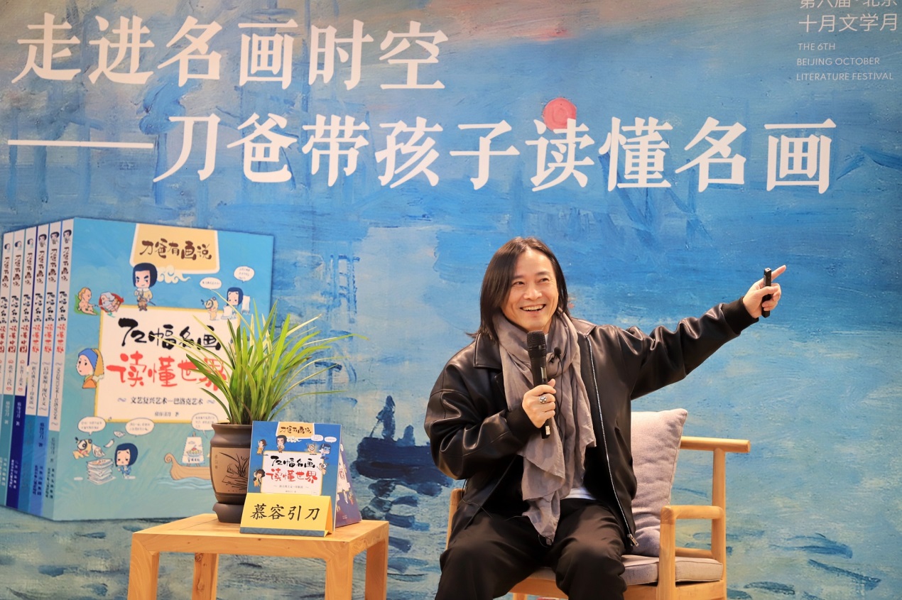 10月23日,第六屆北京十月文學月期間,由北京出版集團北京少年兒童出版社舉辦的“走進名畫時空——‘刀爸有畫說’系列新書分享活動”在京舉行。藝術(shù)家、“刀刀狗”創(chuàng)作者、“刀爸有畫說”作者慕容引刀出席活動,分享創(chuàng)作初衷,暢談對藝術(shù)科普教育的理解。