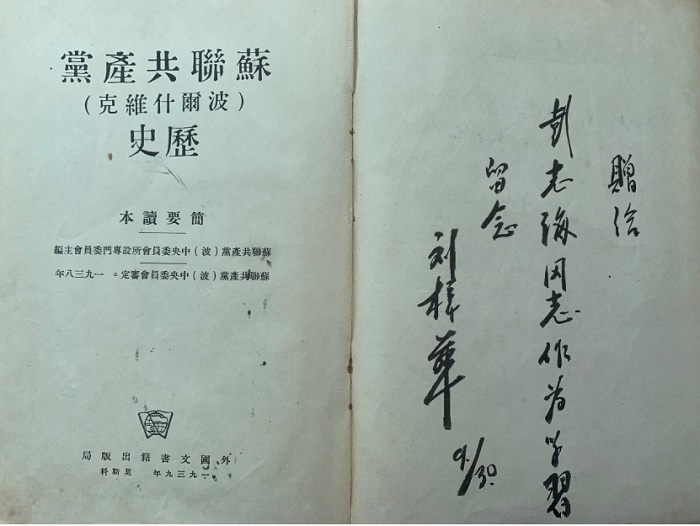 去年10月,書商大飛惠讓給我一冊《蘇聯(lián)共產(chǎn)黨(波爾什維克)歷史簡要讀本》,這是一本當年的名著,難得之處在于這是冊抗戰(zhàn)期間的遞藏本。
