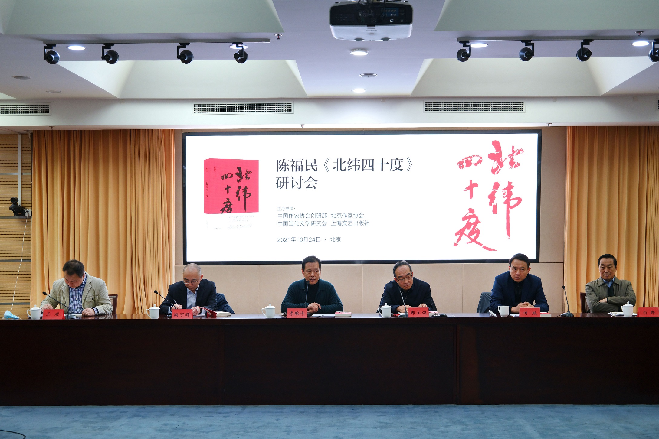 10月24日,由中國(guó)作家協(xié)會(huì)創(chuàng)研部、北京作家協(xié)會(huì)、中國(guó)當(dāng)代文學(xué)研究會(huì)和上海文藝出版社聯(lián)合主辦的“陳福民《北緯四十度》研討會(huì)”在京舉行。中國(guó)作家協(xié)會(huì)黨組成員、副主席、書記處書記李敬澤,中宣部副秘書長(zhǎng)郭義強(qiáng),上海世紀(jì)出版集團(tuán)黨委副書記、總裁闞寧輝,北京市文聯(lián)一級(jí)巡視員田鵬出席研討會(huì)并致辭。白燁、孟繁華、梁鴻鷹、賀紹俊、鐘紅明、喬葉、寧肯、周曉楓、潘濤、楊早、王繼軍、劉大先、楊慶祥、黃德海、岳雯、張定浩、木葉、李林榮、徐剛等十余位專家與會(huì)。會(huì)議由北京作家協(xié)會(huì)副秘書長(zhǎng)王虓主持。