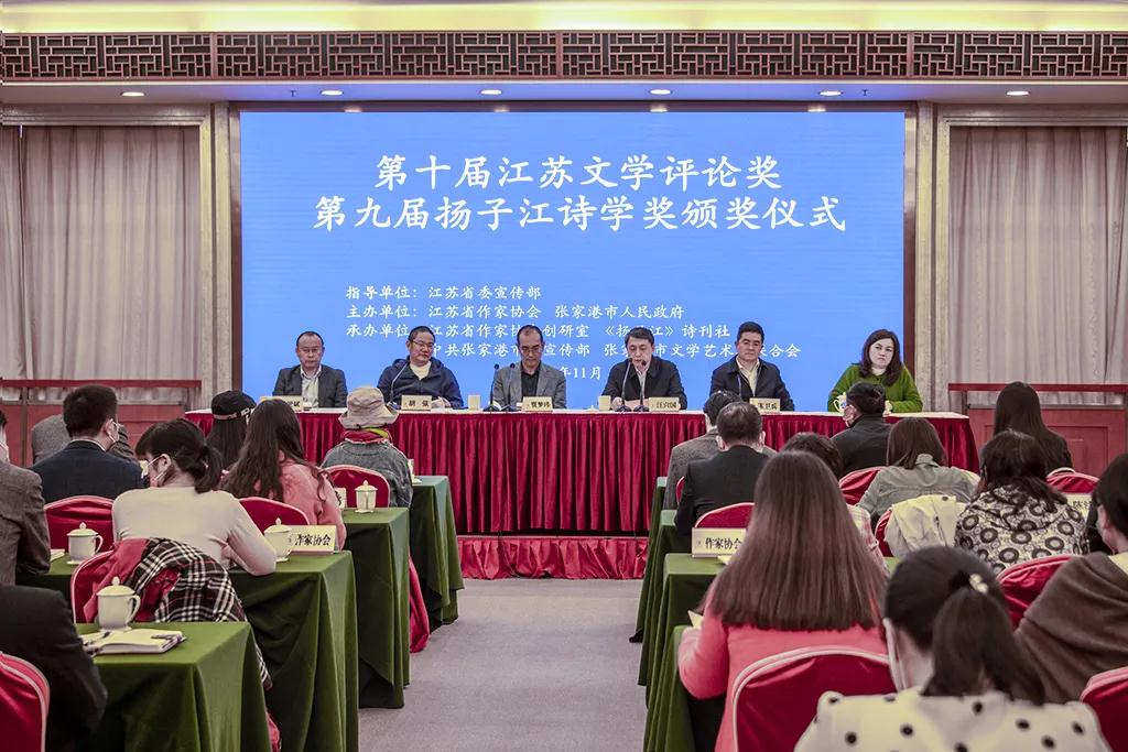 2021年11月6日,第九屆揚(yáng)子江詩(shī)學(xué)獎(jiǎng)在張家港頒獎(jiǎng)。江蘇省作家協(xié)會(huì)黨組書記汪興國(guó),副主席賈夢(mèng)瑋,《揚(yáng)子江詩(shī)刊》主編胡弦,張家港市委宣傳部部長(zhǎng)陳衛(wèi)兵、副部長(zhǎng)李忠影,市文聯(lián)黨組書記、主席錢梁斌,以及特邀的省內(nèi)外詩(shī)人、評(píng)論家和獲獎(jiǎng)作者代表等出席了頒獎(jiǎng)活動(dòng)。