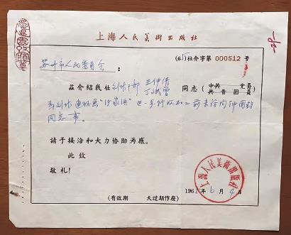 茲介紹我社創(chuàng)作干部王仲富、丁斌曾同志為創(chuàng)作連環(huán)畫“沙家浜”進(jìn)一步修改加工,前來訪問仲國鑒同志一事。