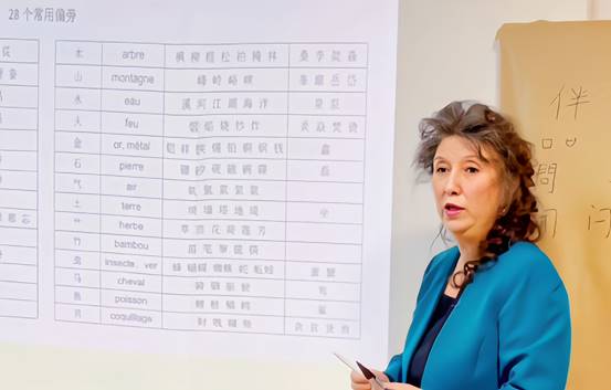文字是文學(xué)傳承的重要載體,要讓外國廣大讀者對遙遠(yuǎn)、陌生乃至有些神秘的中國文化產(chǎn)生更多認(rèn)同和親切感,離不開對博大精深但又生動(dòng)活潑的文學(xué)之源——漢字加以介紹。高醇芳在此次分享活動(dòng)中,根據(jù)首場活動(dòng)中聽眾的反饋和要求,給大家重點(diǎn)介紹了中國文字的起源以及漢字對中華文學(xué)創(chuàng)作思想的影響。高女士介紹說,從“漢字萌芽”陶文到甲骨文、鐘鼎文、石鼓文、秦簡、紙帛書法,到大小篆文、章草、楷書、行書、狂草,一直到印刷字體、簡體字,漢字幾千年以來一直展示著旺盛的生命力。為便于聽眾理解,高女士還專門就漢語拼音和法國遠(yuǎn)東學(xué)院拼音系統(tǒng)兩種拼音進(jìn)行了細(xì)致的對照,讓讀者有了更加直觀的感受。將近兩小時(shí)的講解過程中,現(xiàn)場氣氛熱烈,提問一直不斷。
