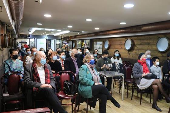 細(xì)雨綿綿,汽笛悠長,初冬的寒意籠罩著塞納河,卻擋不住讀者們踴躍的熱情。在疫情形勢下,11月29日,“中國文學(xué)讀者俱樂部”第二場活動(dòng)繼續(xù)在法國巴黎埃菲爾鐵塔對面的一條游船上舉行。俱樂部負(fù)責(zé)人、法中友好協(xié)會(huì)主席高醇芳主持活動(dòng),來自法國政界、教育界、演藝界的50多人參加了活動(dòng)。