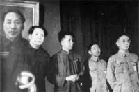 1949年全國第一次文代會上,左起:毛澤東、周揚、茅盾、郭沫若