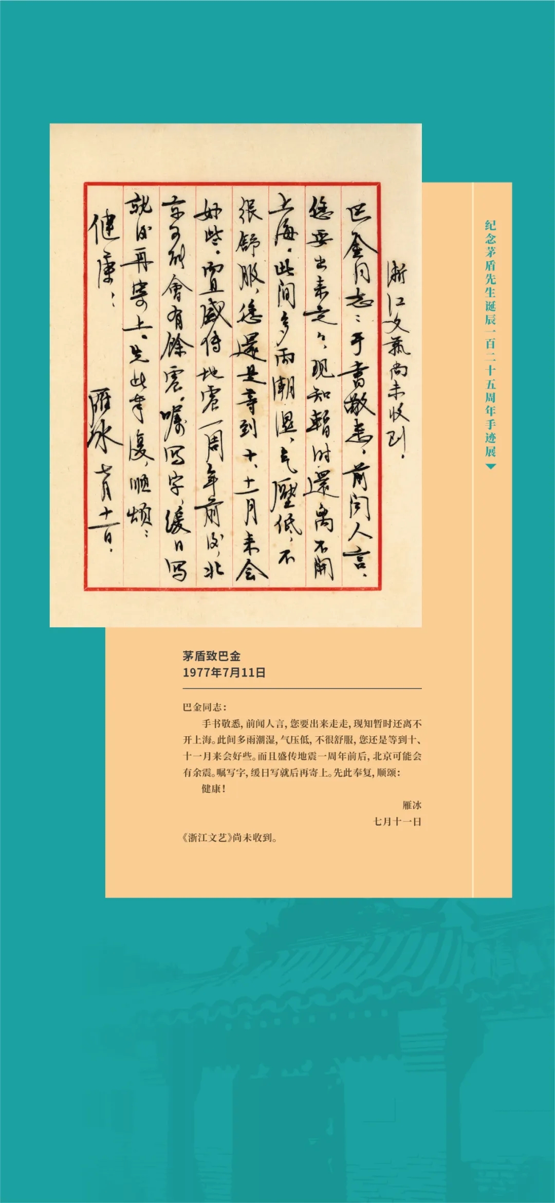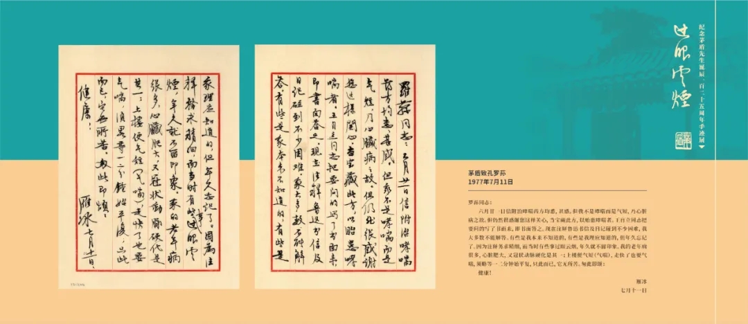 中國(guó)現(xiàn)代文學(xué)館舉辦“紀(jì)念茅盾先生誕辰125周年手跡展”