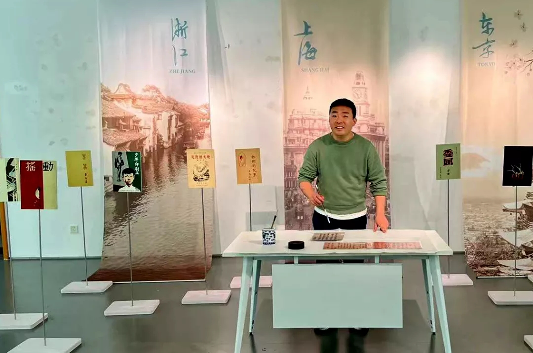 立體書(shū)裝置自成打卡留念區(qū),看完手跡展,站在茅公書(shū)桌前,自己也揮筆在字帖上留下墨跡。