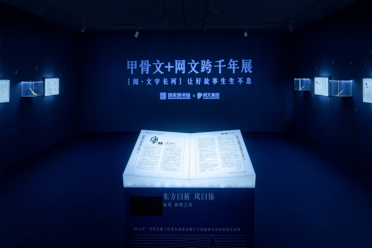 正在國圖?津灣文創(chuàng)空間展出的“甲骨文+網(wǎng)文跨千年展”中,不同時代的文字匯聚交融,形成了別出心裁的“閱?文字長河”藝術(shù)裝置,甲骨文、金文、小篆、隸書、楷書、簡化字,文字流變的脈絡(luò)在其間清晰可見。觀眾觀展時,不僅可以近距離感受甲骨文的字形之美,還可以掃碼閱讀網(wǎng)文作家為它創(chuàng)作的微故事。國家圖書館副館長張軍期待,通過活動進(jìn)一步擴(kuò)大古文字文化的傳播,推動中華優(yōu)秀傳統(tǒng)文化創(chuàng)造性轉(zhuǎn)化、創(chuàng)新性發(fā)展,展現(xiàn)中華文化的影響力、凝聚力、感召力。