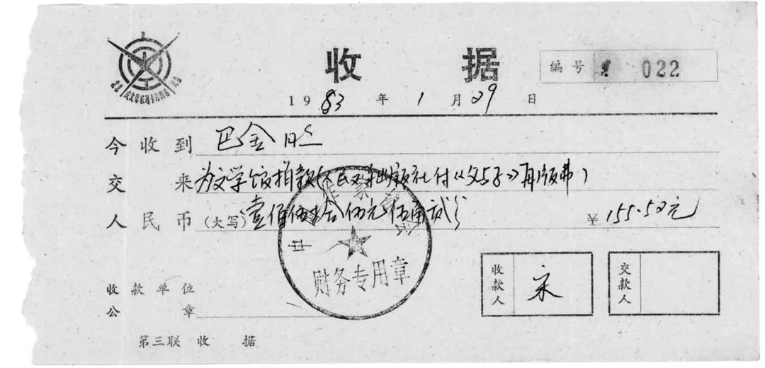 3月21日 人民文學(xué)出版社《巴金選集》稿酬585.00元