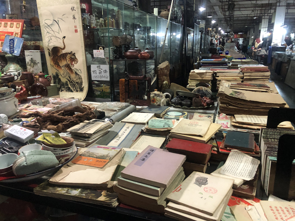 某日,因?yàn)橄矚g上養(yǎng)金魚蘭壽,搜索到普陀區(qū)靈石路有家全市最大的觀賞魚花鳥市場(chǎng)。靈石路,1958年才建成,以山西靈石命名,跨了靜安、普陀、寶山三個(gè)區(qū),而花鳥市場(chǎng)地處普陀居民區(qū),周圍生活氣息相當(dāng)濃厚。走進(jìn)綠植蔥蔥的市場(chǎng),看見實(shí)惠的金魚之王蘭壽頓時(shí)心生喜悅,因?yàn)樘m壽好看但難養(yǎng),價(jià)格又都偏貴,所以能買到合適練手的實(shí)屬不易。在市場(chǎng)里逛到深處,意外發(fā)現(xiàn)后排還有棟三層樓的商場(chǎng),原來是賣古玩為主的“聚奇城”。城隍廟、云洲商廈以及以前的東臺(tái)路等都號(hào)稱上海的“潘家園”,但這趟偶然間撞進(jìn)來,觀察下來發(fā)現(xiàn)這家才是價(jià)格公道利民的真“園”,里面一樓賣郵票錢幣為主,二樓有很多古董和舊書的攤位店鋪,三樓的地?cái)偸屑康街芪宥际侨祟^攢動(dòng)。