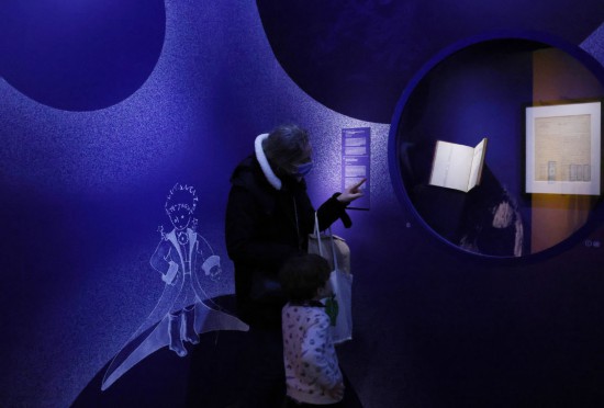 ↑2月23日,一名參觀者在法國巴黎裝飾藝術博物館舉行的“遇見小王子”展覽上翻看《小王子》。