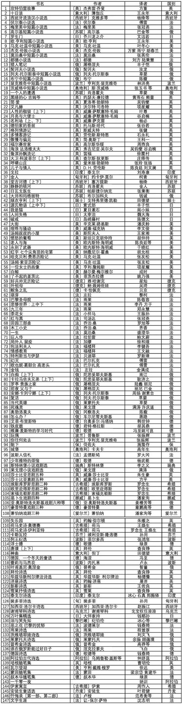 附:新版外國文學名著叢書目錄(全)