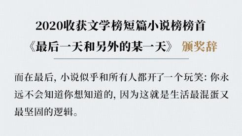 《最后一天和另外的某一天》獲得了2020年收獲文學(xué)榜短篇小說榜榜首,書寫的是一個女殺人犯的故事。一個女人在監(jiān)獄里待了整整十七年,成為了監(jiān)獄里的頭號模范犯人。這個女人身上到底發(fā)生了什么樣的故事?對這個問題的探尋一直貫穿于我們的閱讀體驗中。收獲文學(xué)榜頒獎辭對小說的理解是這樣的:“小說試圖窺探這個女人謎一樣的人生,卻發(fā)現(xiàn)終究所得有限。在不得已的情況下,小說設(shè)置了戲中戲,一部以此女人為原型的戲劇在舞臺上演,作為原型的女人坐在觀眾席里冷若冰霜。這是作家和他作品中人物的角力,在這個意義上,艾偉的這篇小說帶有“元小說”的氣質(zhì),因此小說有兩個文本面向,在表層文本里,女犯人的故事以懸疑劇的方式勾起了讀者足夠多的好奇心;在深層文本里,這是一個關(guān)于作家無法馴服其作品人物的故事,它暗示了藝術(shù)的高度和限度。而在最后,小說似乎和所有人都開了一個玩笑:你永遠(yuǎn)不會知道你想知道的,因為這就是生活最混蛋又最堅固的邏輯。”《最后一天和另外的某一天》寫了不可理解之理解,因而深不可測。