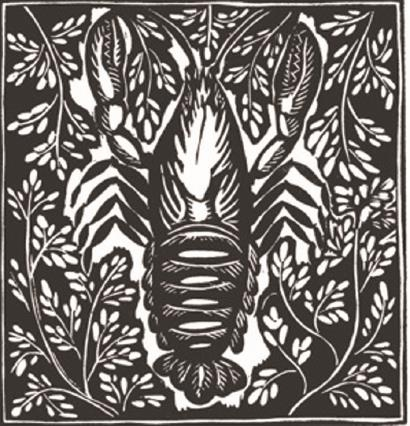 但是,相較于龍蝦,小龍蝦的形象相對(duì)少見。后者雖然形象氣質(zhì)與大龍蝦無異,無奈體型渺小,又寄身“江湖”,格局就顯得小了許多,就連張牙舞爪的氣勢(shì)也讓人覺得有些虛張聲勢(shì)。19世紀(jì)美國作家安布羅斯·比爾斯(AmbroseBierce)的《魔鬼字典》對(duì)“小龍蝦”如此定義:“一種狀如龍蝦的小型甲殼類動(dòng)物,不過與其相比更易消化。”這么一番揭露雖譏諷了小龍蝦的形象,卻也肯定了其口感。1911年,超現(xiàn)實(shí)主義作家阿波利奈爾出版了《禽蟲吟》一書,吟詠各類草木蟲魚,其中有《小龍蝦》一詩,配有野獸派畫家杜飛(Raoul Dufy)木版雕刻的同題畫作。詩中寫道: