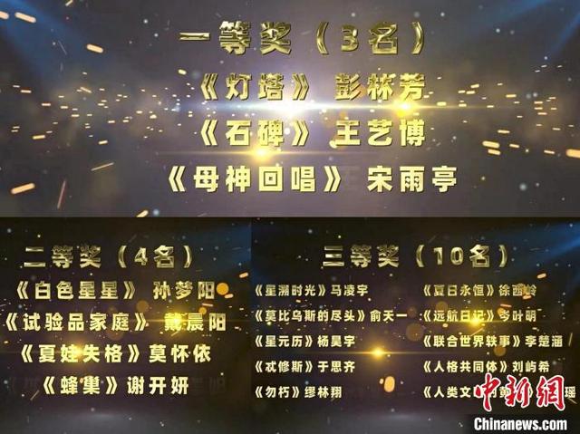 首屆“鯤鵬”全國青少年科幻文學(xué)獎頒獎典禮21日晚在線上舉辦。專家委員會從近3萬篇投稿作品遴選出《燈塔》等精品,彭林芳等17位作者分獲大賽一、二、三等獎。