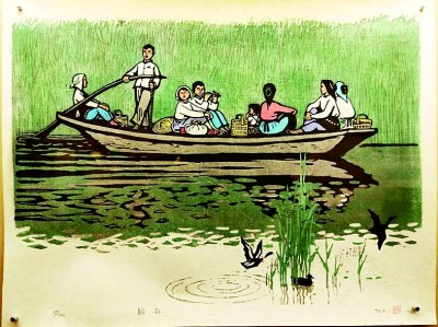 1960年,《人民日報(bào)》發(fā)表了我的第一幅版畫,次年我的成名代表作版畫《春天》也在該報(bào)發(fā)表,受到許多人喜愛,從此一發(fā)不可收。1962年、1963年該報(bào)相繼發(fā)表了我的《果山秋景》《女社員們》等版畫(這三幅畫后來被中國美術(shù)館收藏,《春天》還被載入版畫史)。我初露頭角即受到美術(shù)界前輩們的特別關(guān)愛,繼而又榮幸受邀參加紀(jì)念《講話》的座談會(huì)。