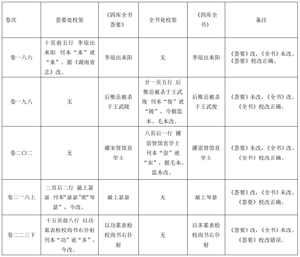 表1 薈要處、全書處所載《新唐書》校簽異同表(部分)