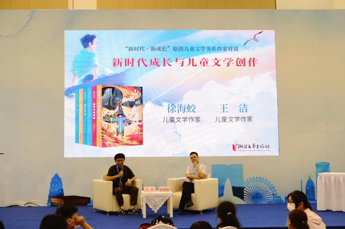 正是江南好風(fēng)景,書香時(shí)節(jié)又逢君。2022年7月2日,第十二屆江蘇書展在蘇州國際博覽中心拉開帷幕。開幕式當(dāng)天,浙江文藝出版社攜兒童文學(xué)作家、中國作家協(xié)會(huì)會(huì)員徐海蛟和兒童文學(xué)作家、浙江省作家協(xié)會(huì)會(huì)員王潔精彩亮相書展,圍繞“新時(shí)代成長與兒童文學(xué)創(chuàng)作”展開了精彩的對談。