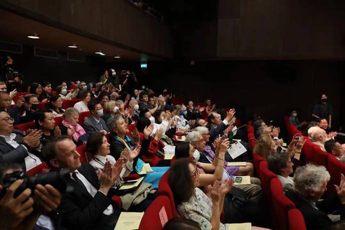 在活動(dòng)結(jié)束后的酒會(huì)交流中,各界嘉賓和觀眾仍然沉浸在詩(shī)歌的氛圍中,氣氛十分熱烈。大家紛紛表示,此次詩(shī)歌朗誦會(huì)設(shè)計(jì)巧妙,所選的詩(shī)人和作品都充滿了現(xiàn)代感、歷史感和人性的深度,讓法國(guó)讀者感受到了中國(guó)當(dāng)代詩(shī)歌創(chuàng)作的活力與多樣性。活動(dòng)現(xiàn)場(chǎng)將詩(shī)歌朗誦和藝術(shù)演繹完美結(jié)合、相得益彰,情感真摯、層次豐富,深深感染了在場(chǎng)的每一個(gè)人。大家紛紛詢問下一場(chǎng)活動(dòng)的時(shí)間,期待未來能在法國(guó)看到更多精彩的中國(guó)文學(xué)作品,讓法國(guó)朋友可以更加立體、生動(dòng)、全面地感受中國(guó)文化的思想內(nèi)涵和現(xiàn)代表達(dá)。