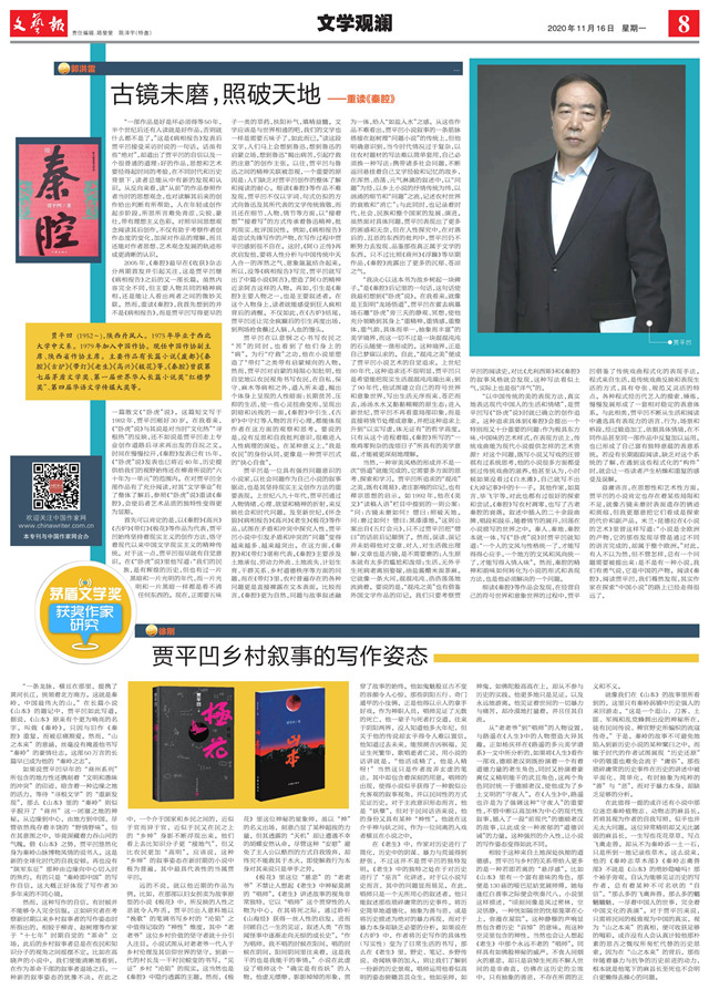“茅盾文學獲獎作家研究”之賈平凹(2020年11月16日)