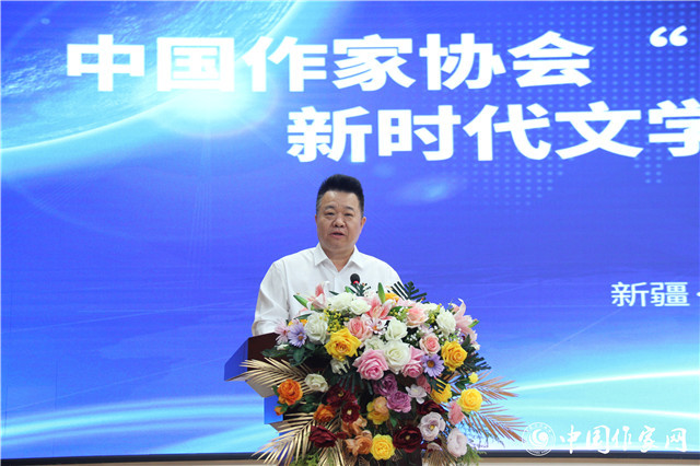 邱華棟在授牌儀式上講話。他表示,中國作家協(xié)會(huì)設(shè)立“深入生活、扎根人民”新時(shí)代文學(xué)實(shí)踐點(diǎn),就是要進(jìn)一步團(tuán)結(jié)引領(lǐng)廣大作家與人民同行、與時(shí)代同步,堅(jiān)持以人民為中心的創(chuàng)作導(dǎo)向,鼓勵(lì)廣大作家把“深入生活、扎根人民”作為長期自覺的行動(dòng),進(jìn)一步推動(dòng)“深入生活、扎根人民”新時(shí)代文學(xué)主題實(shí)踐常態(tài)化、長效化,推動(dòng)新時(shí)代文學(xué)繁榮發(fā)展。同時(shí),這次文學(xué)實(shí)踐點(diǎn)掛牌活動(dòng)也是中國作協(xié)堅(jiān)持以鑄牢中華民族共同體意識(shí)為主線,全力推進(jìn)“文化潤疆”工程的重要舉措。