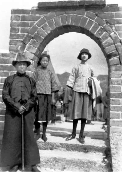 1924年梁?jiǎn)⒊c次女梁思莊和林徽音(其時(shí)尚未改名徽因)一起在北京游長(zhǎng)城。作為建筑學(xué)家,林徽因?qū)Ρ本┕沤ㄖ橛兴姡鵀槠鋵?xiě)下一系列專業(yè)性與文采兼美的文章,在《平郊建筑雜錄》中還提出了“建筑意”的概念。