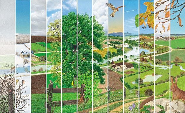 熱內(nèi)·梅特萊爾創(chuàng)作《四季年鑒》時好似攝影師,將“鏡頭”對準(zhǔn)同一片田野,在整整一年里摁下了十二次“快門”。