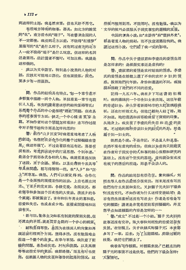 問:作品中采用了群眾的語言,生動、樸素,有濃厚的生活氣息,表現(xiàn)了各種不同人物的性格。不知作者是怎樣采用了群眾語言的?有的讀者認為不應(yīng)該用這么多方言土語使外鄉(xiāng)人看不懂。不知作者對這個問題有什么意見?對于文學(xué)作品中的語言有些什么看法?